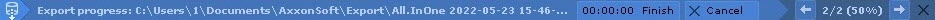 If several export processes are active, you can switch between them by clicking the buttons. The following information is displayed between them: number of the current export operation/total number of export operations (export progress for all operations).
