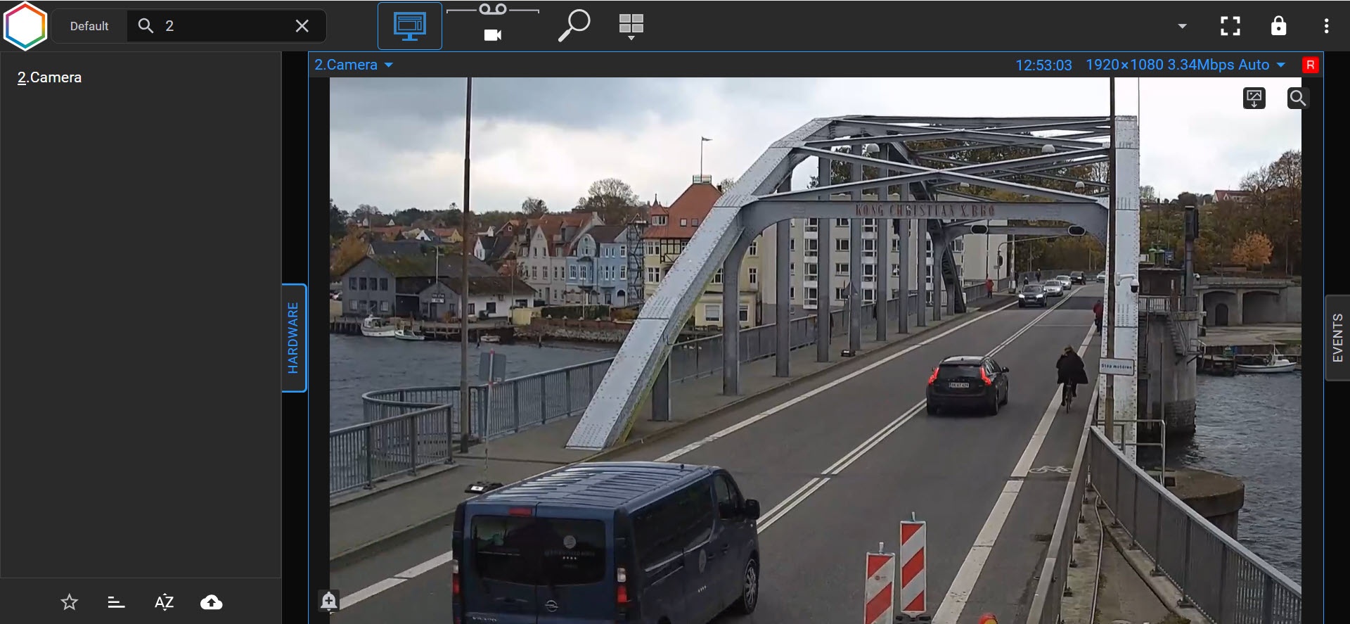 When you select a camera, live video image will be displayed.