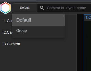 To display a camera group (see Configuring video camera groups), click the Default button and select the required group.