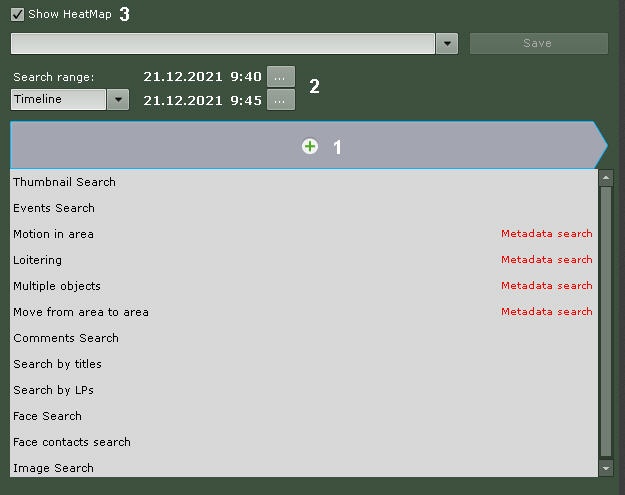 2. Set the time period, according to the data from which the heat map must be generated (2, see Setting a search interval).