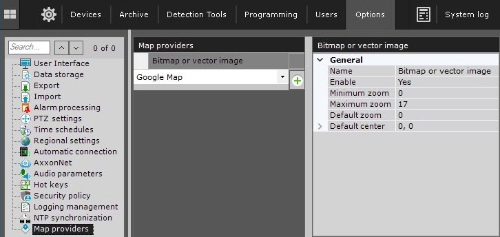 2. Configure Google Map display in Axxon One: