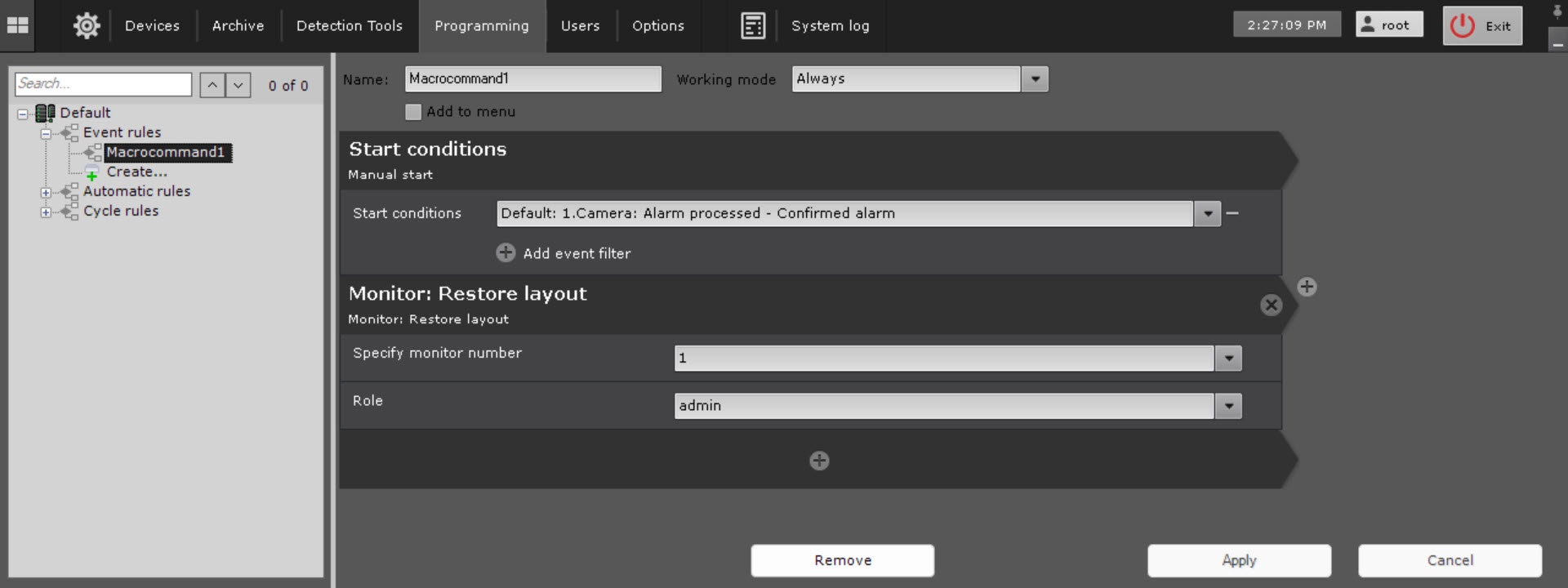 3. Select a start condition that triggers a macro (see Configuring start conditions).