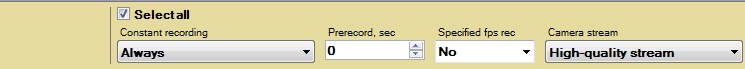 1. INo가 선택되면 비디오 스트림은 운영자가 수동으로 경고를 시작하거나 자동 규칙이 실행될 때만 아카이브에 기록됩니다.