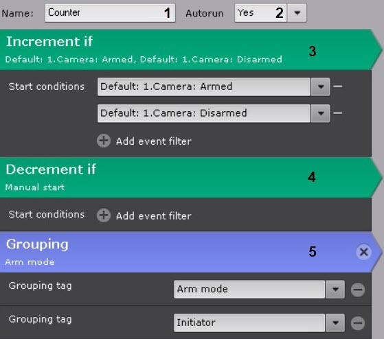 집계 결과를 그룹화할 하나 이상의 속성을 선택하세요 (5). 그룹화는 카메라의 경비 설정 및 해제 이벤트, 얼굴 인식, 차량 번호판 인식 이벤트에 대해 가능합니다.