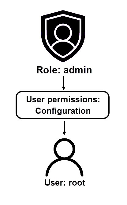 By default, there is one role (admin) and one user (root). The root user belongs to the admin role and has rights to configure all components of the video surveillance system. To add a user with individual permissions, create a new role with the necessary permissions and then create a new user account.