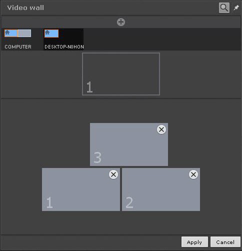 Videowall의 모니터는 클라이언트 모니터와 동일한 방식으로 관리할 수 있습니다 (로컬 클라이언트에서 모니터 관리, Axxon 도메인 내 원격 클라이언트의 모니터 관리 참고).