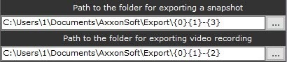 스냅샷을 내보낼 폴더 경로(3) 및 비디오 녹화를 내보낼 폴더 경로(4)에 내보낸 파일을 저장할 폴더의 전체 경로를 입력합니다. 버튼을 클릭하여 작업을 수행하세요.