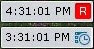 현재 카메라에서 비디오를 녹화 중인 경우 문자 R 시계 오른쪽에 빨간색으로 표시됩니다 . 그 외의 경우에는 문자 R이 회색으로 표시됩니다 .