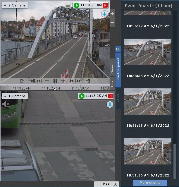 모든 레이아웃에서 선택한 카메라의 감지 도구 트리거 이벤트에 빠르게 액세스할 수 있습니다. 이를 위해 다음 단계를 따르세요.