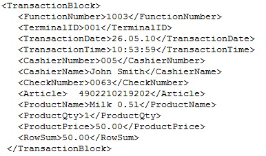 - When parameter specified in the [IGNORE_ZERO] section equals zero, the corresponding POS event will be ignored. For example, package is received from the POS, and the following text is specified in the xml_titles.txt file, than section with the specified event won't be added to the POS_LOG_DETAIL table.