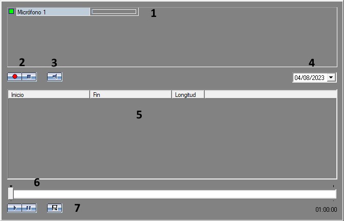 La ventana Reproductor de Audio se utiliza para operar con el subsistema de monitoreo de sonidos, la cual posibilita la grabación y supervisión de audio en los lugares protegidos.