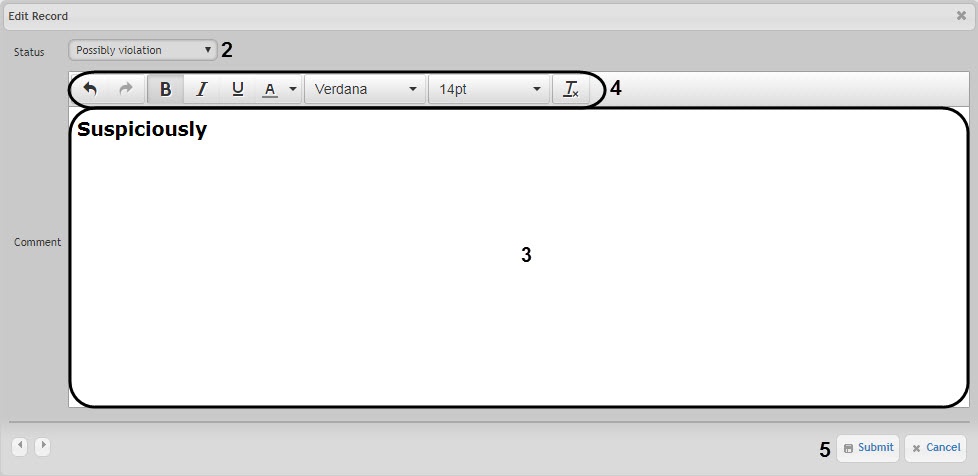 4. If necessary, enter a comment in the field (3). Text formatting tools are displayed on the panel (4).