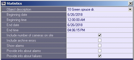 - If you set the Object description field to a certain object, you can edit the Provide info about alarms and Provide info about failures parameters. Select these check boxes if you want to include detailed information on failures and alarms in the report.