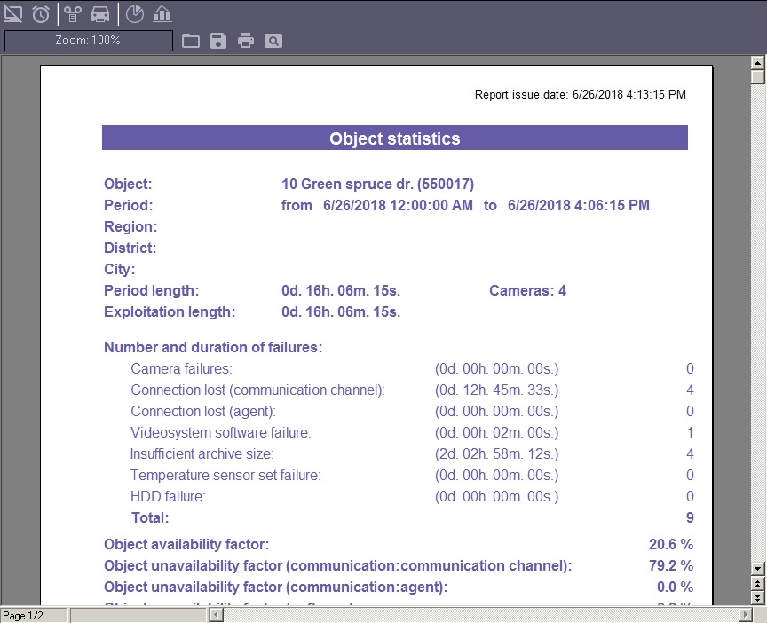 - Include number of cameras on site. If you select this check box, the non-readiness rates for the cameras and archives are calculated taking into account all the cameras of the object.