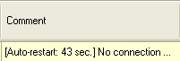 In case data have stopped coming during the download, for example if connection with the object is lost, download will be restarted after a random time interval from 1 to 60 seconds. In case of the attempt failure, attempts will be made at intervals of 1 minute. Information on the time remaining to the restart is displayed in the Comment field. Any time you can restart loading manually using the Restart button.