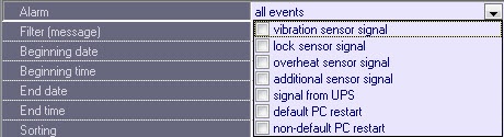 - Filter (message). This parameter allows setting a text filter by the messages from the monitored alarms (see Configuration for associating events with certain alarm groups).