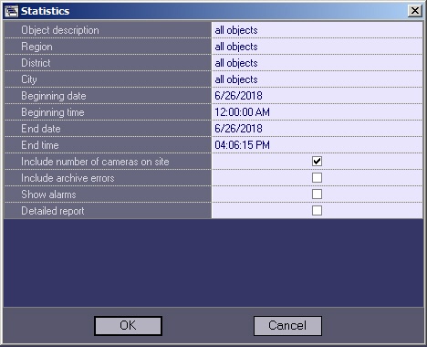 - If you set the Object description parameter to All objects, you can edit the Detailed report parameter. If you do NOT select this check box, a generalized statistical report on the system is created.