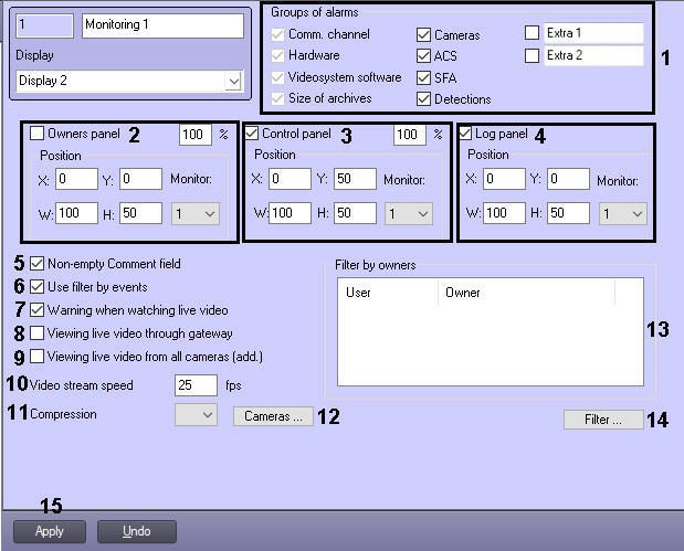 In the Video stream speed field, enter the number of frames per second of the video image when viewing live or archive video (10). This parameter is used to limit the data flow between the Server Of Control and the Agent Of Control (for example, in case the communication channel has low bandwidth).